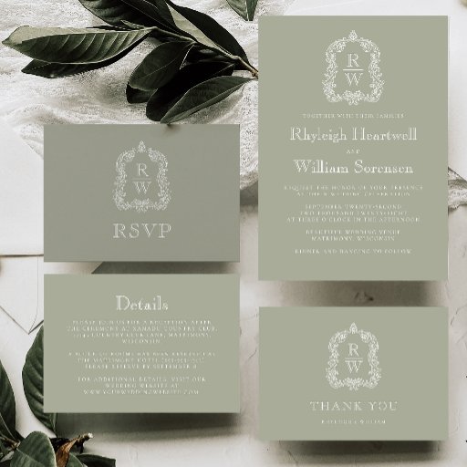 Classic Monogram Crest Sage Green Wedding SuiteDesignad av Akhates Designs