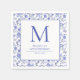 Vintage Monorgam Blue White Blommigt Birthday Pappersservett