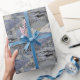 A beautiful vintage painting of a mountain landscape covered in snow makes lovely wrapping paper for your holiday gifts.