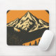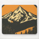 En vintage-inspirerad design med en stor bergstoppsnivå som tappas i den varma glöden från sol. Berget omges av en tät skog från gräs träd som skapar en fredlig och sund atmosfär.