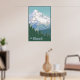 Detta är ett i raden av poster för att fira de stora topparna i Cascade Range. Den nordvästra konstnären Mitch Frey hämtar inspiration från National Park-reklamen från 1930-talet-1940-talet. Underbar omsorg ägnas åt att rendera varje form och färg. Om du tittar på den samordnade paletten, eleganterna och den integrerade texten, kommer tittaren att inse att detta är mycket mer än en massproducerad bild med utbytbara etiketter. Den här scenen är ett nöje att se i närheten av eller över rummet.