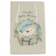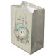 Anpassad design har en förtjusande vintage nalle med en botanisk krans ram. Björnen bär en nybörjare med stil-sockel i blått grönt i akvariet med buggbinder och suspensioner. Bakgrunden är ett beige rand mönster som ger vintagen ett bättre utseende. Det är ett underbart val för en babydusch att välkomna en pojke. Anpassa texten med namn som tillhör Mamma till be eller så kan du använda annan önskad text till kostym i tillfälle.