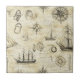A beautifully detailed vintage nautical pattern ceramic tile featuring hand-drawn ships, compasses, navigation tools, and maritime sketches. The aged parchment background and intricate line art create a classic nautical aesthetic.