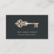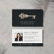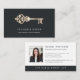 affärskorten i elegant för agent eller verkstäder i gods har en illustration av vintagen skelett i nyckel i Faux guld med ditt namn eller i namn under. Lägg till kontaktuppgifter för fullt på motsatt sida i mjuk, mörk och vit bakgrund, tillsammans med ett foto.