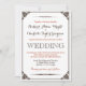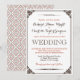Vintage och rustik bröllopsinbjudan med mörkbrun text. Dekorerad med en viktoriansk blomkant på framsidan. Baksidan av kortet är dekorerad med vintage-mönster. Klassisk design för din speciella dag. Anpassa texten och formuleringen för alla tillfällen som brudkväll, baby shower, förlovningsfest, möhippa, födelsedagsfest och mer.