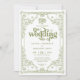 En vismisk bröllopsinbjudan med vintagens oliv grönt toner och ett antika stil ram. Blanda nostalgiskt elegans med en aning lekfull charm, det är perfekt för par som kärlek är en romantisk och fantasifull estetisk.
