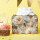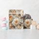 Vintage, ömtåligt blommönster. Vita persikoblommor med grått löv mot en ljusbakgrund.