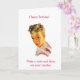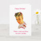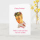 En vintage bild av en söt ung kvinna från 1950- eller 1960-talet med rosa bows i blonda hår och röd läppar. Hon vänder och tittar på dig över axeln och säger: "Grattis på födelsedagen! Önska och spränga dina ljus." På kortets insida: "Minns du att du angav hög, mörk och stilig?"
