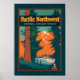 Vintage-teckningar som annonserar i Stillahavsområdet nordväst. Minimal färg.