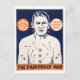 Detta vykort är en återgivning av en vintage affisch som annonserar "världsdynt i berömden" som en del av "tro det eller ej"-troupen som förespråkas av Ripley. Det visar mannen som sitter fast med nagel, stift och knappar.