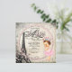 Bedårande rosa ballerina med pärlhalsband och tutu rosa pärlor Eiffeltornet Paris baby shower inbjudan. Denna vackra vintage Paris baby shower inbjudan kan enkelt anpassas för din fest genom att lägga till dina detaljer i den typsnittsstil och färg, samt formulering du väljer.