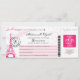 En Vintage Paris Frankrike Ombordstigningskort för en Quinceanera-fest. Flourish Designs med Eiffeltornet. Färgerna är het rosa, vit och svart. Om färgschemat inte är vad du ville ha, låt mig veta så återskapar jag det åt dig. paula@labellarue.com Se till att du kontrollerar din design innan du skickar in din beställning. Om du har frågor angående designen, låt mig veta så hjälper jag dig gärna med designen. Tack!