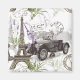 En vacker vintage som inspirerats av Paris och som har en retrobil, Eiffel Torn, vintage frimärke, retro mobil och lavender, allt på två ton. Elegantens återkollage.