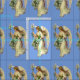 Det är vackert att vintagens ängel som håller liv på blå bakgrund finns på detta tyg. Använda för sådd, tappning och hemmabruk för Påsk eller Vår!