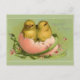 Det här vykortet innehåller en vintage som visar två chickar i Påsk som kläcks från ett rosa ägg. Njut av att skicka den här söta Vintagen Påsk Chick Hatch Postcard till dina vänner och familj den här Påsk-säsongen.
