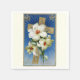 Söt, vita ljuger på guld kor mot blå bakgrund. Hälsning: A Glad påsk. Bild av Påsk vykort för Vintage mot elfenbensbakgrund.
