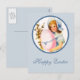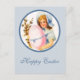 Vintage Påsk vykort med en söt liten flicka som håller ett Påskägg.