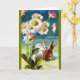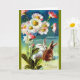 Ett par bunnies ger dig tidningar av ett "Glad Påsk" i det här vackra kortet baserat på ett vykort för vintage från tidigt 1900-talet.