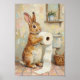 En lekfull vintage kanin illustration perfekt för charmig lantlig badrumsdekor.