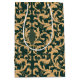 Tracery vintage pattern. Ornament with yellow silhouette of floral curls on green background. Baroque texture