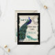 Det finns en touch av nyckfullhet och kul i denna design med två vintage påfåglar, en i full intensiva färger av kobolt, påfågel och akblå med lila och grönt, den andra är en penna- och bläckteckning i påfågelblått. Du har valet av bakgrundsfärg, som visas här i påfågel eller mörkt tealblått. Under anpassningen väljer du helt enkelt "redigera" och i rullgardinsmenyn väljer du bakgrund. Du kan välja valfri färg på diagrammet eller ange hex#-koden för valfri färg du vill ha (i rutan längst ner till höger). Vi är också mer än glada att hjälpa dig om du vill ha det. På baksidan finns din information om "Save the Date", inklusive stad och stat där du ska gifta dig, brudens och brudgummens namn, bröllopsdatum och din bröllopswebbplats om du har