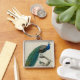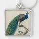 Vintage Peacock Fyrkantig Silverfärgad Nyckelring
