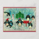 En roligt Julhälsningar med penguiner i ett vykort för texturerad vintage. Anpassa vykortet till din familjs namn.