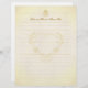 Detta bröllopsbrevpapper har en slitna, vintage pergamentpappersbakgrund i krämiga neutrala nyanser med dekorativa element i guldnyanser. Det har utformats för att användas som bröllopsgästbokssidor men kan också användas som korrespondens för tackbrev eller andra tillämpningar.