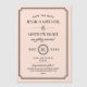 Prisvärda anpassade magnetiska bröllopskort med en enkel mall för anpassning. Använd designverktygen för att anpassa texten med din bröllopsinformation. Redigera textens teckensnitt och färger, ändra bakgrundsfärgen eller ladda upp dina egna foton för att skapa en unik magnet för att spara datum. Denna vintage-art déco-inspirerade design har en elegant kant och en blandning av script- och sans-serif-typografi i svart och rosafärgade nyanser.