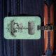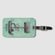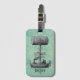 Bagagetagg med vintage illustration av luftfartyget på blå dammbakgrund. Anpassa med namn eller monogram.