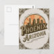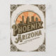 En vintage-stil-logotyp med namn "PHOENIX" i fet, stiliserad stil. Ord "ARIZONA" visas i ett mindre, kompletterande teckensnitt under "PHOENIX". Logotypen är omgiven av dekorativa blomningsfärger och solsprängningsdesign som skapar ett klassiskt och tidlöst estetiskt material. Hela paletten i färg är varm och inbjudande, med bruna nyanser, orange och kräm.