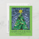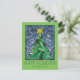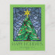 De här ljusa och färgstarka vykorten 5 tum x 7 tum platt jul i hälsning har en handgjord nedfläckad av i vattenfärg som är utformad av en grönt Julgran med en guld-stjärna och röda prydnadsföremål som är inramade i vackra blå nyanser på en papegoja gröntens bakgrund. Hälsning är "Glad helg" i ett stort dekorativt brev med ett redigerbart hälsning, "som önskar er fred, kärlek och glädje denna julhelg".
