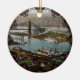 I vintagen visas en översikt över floderna Pittsburgh i Pennsylvania i slutet av 1800-talet vid det som i dag är Point Park, där Ohio-floden, Allegheny-floden och Monongahela-floden samlas för att bilda en landtriangel. Omtryckt på denna vackra julprydnad med Viktoriansk filagretrim.