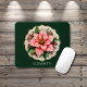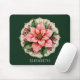 Elegant vintage illustration of a pink poinsettia flower surrounded by green leaves and red berries, placed on an ornate lace doily with golden accents. Printed on a smooth, durable surface, this mouse pad brings festive elegance to any workspace.
