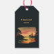 Vintage Pond sunset pontoon escape grönt red Presentetikett