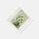 Paper napkins with a seasonal St. Patrick's Day image. Faded grunge style paper. A green pot of gold with coins