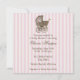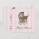Den här vackra men ändå elegant designen har en baby vintage på en förtjusande shabby chic-bakgrund i godis rosa rand på båda sidor, med information i mocha brun. Det finns också ett val av andra lika förtjusande färger.