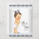 Bekvämt blåprins pojke duschinbjudan med söt liten prins på vacker grått, svart och blå bakgrund. Den här söta babyduschinbjudan för prinsen är lätt att anpassa för din händelse genom att helt enkelt lägga till information om din händelse, typsnitt stil, typsnitt storlek & färg och ordalydelse.
