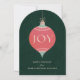 Fira säsongen med detta högtidskort som har en illustrerad vintage hängande prydnad mot en mörkgrön tallbarrsbakgrund. Inspirerat av design från mitten av förra seklet, blandar detta festliga icke-fotokort nostalgisk charm med tidlös elegans. Perfekt för att skicka varma högtidsönskningar till vänner, familj, kollegor eller kunder med en touch av retro stil.
