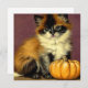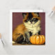 Kort med vintage Ragdoll Halloween-katt! Denna söt kattunge ligger med en orange pumpa. En underbar gåva till Halloween fest och kattälskare!