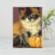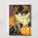 Kort med vintage Ragdoll Halloween-katt! Denna söt kattunge ligger med en orange pumpa. En underbar gåva till Halloween fest och kattälskare!