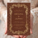 Denna inbjudan från elegant bröllop innehåller en ornitad vintage guld ram på en nödlidande färgad av rost, som en kopia av ett antikt bok täcke. Anpassa guld-färgaden med namn och bröllop. Baksidan upprepar motivet i ram.