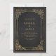 Denna inbjudan från elegant bröllop innehåller en ornerad vintage guld ram på en nödlidande svart bakgrund som påminner om ett antikt bok-täcke. Anpassa guld-färgaden med namn och bröllop. Utformningen av ram upprepas på kortets baksida.