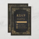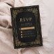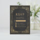 OSA kort i elegant bröllop har en ornerad vintage guld ram på en nödlidande svart bakgrund som påminner om ett antikt omslag i bok. Utformningen av ram upprepas på kortets baksida.