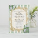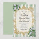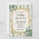 Sätt tonen för en tidlös fest med denna eleganta bröllopsinbjudan med mjuka salvia-gröna ränder, ömtåliga vita blommor och en utsmyckad guldram. Den vintage-inspirerade botaniska bakgrunden tillför en romantisk, förfinad touch, medan den graciösa layouten ger en vacker plats för din personliga formulering.