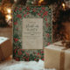 Ge din julhelg elegans med den här vintagens röda bädddesign. En lush gräns av grönska och ljusa bär omger din händelseinformation och skapar ett festligt ram inspirerat av klassisk botanisk konst. Perfekt för dem som kärlek traditionella helgdag charm med en aning sofistikering.