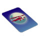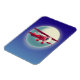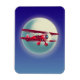 Vintage Red Biplane som flyger högt förbi ett vackert fullt måne.