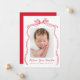 Fira din lilla ankomst med vår elegant Vintage Red Bow-födelseanmälan. Visa din nyfödds foto med en charmerande röd båge, med din baby namn i ett vackert handskrivet rödskript. Under kan du lägga till födelsedetaljer som vikt, längd och datum. Baksidan ger utrymme för ett foto från extra och ett personlig till nära och kära. Det här anpassadet är perfektens sätt att meddela din nyaste familjemedlem med stil och skam!