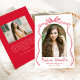 Notera student:s milstolpe med denna elegant och det tidlösa tillkännagivandet av studenten, med ett foto som visas i ett bågformat ram, accentuerat av en handdragen röd båge och band på en klassisk vit bakgrund. Student namn lyfts fram i ett handskrivet skript i snyggten, där skolåret och studenten-året visas elegant nedan. Baksidan av meddelandet innehåller ett foto och utrymme för ett anpassningsbar-meddelande, perfekt för att dela tacksamhet, framtida vågräna eller information om party. Den här sofistikerade designen erbjuder ett modernt men ändå vintage-inspirerat sätt att fira högskolan eller högskolan i student!