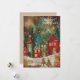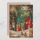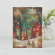 Vintage-julhälsningskort med målning av en by med rött hus och grönt och accenter från guld. Texten säger "God jul", men är anpassadet för ert eget hälsning. Personlig på baksidan med ditt budskap och namn. Kontakta mig om du behöver hjälp med din anpassning eller om du vill be om ytterligare matchning eller samordning av Zazzle-produkter.